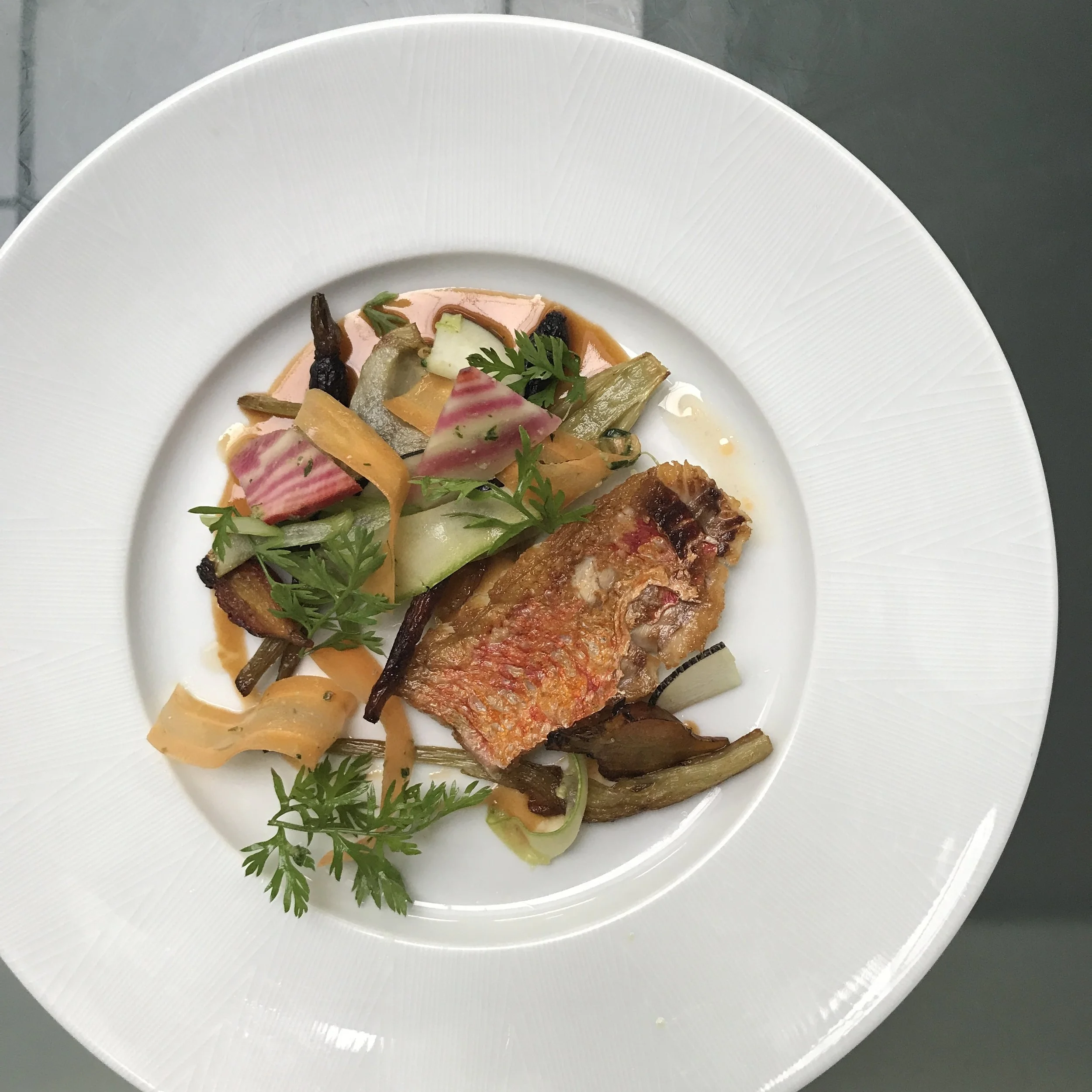Red Mullet, vegetables, shellfish jus (Copy)