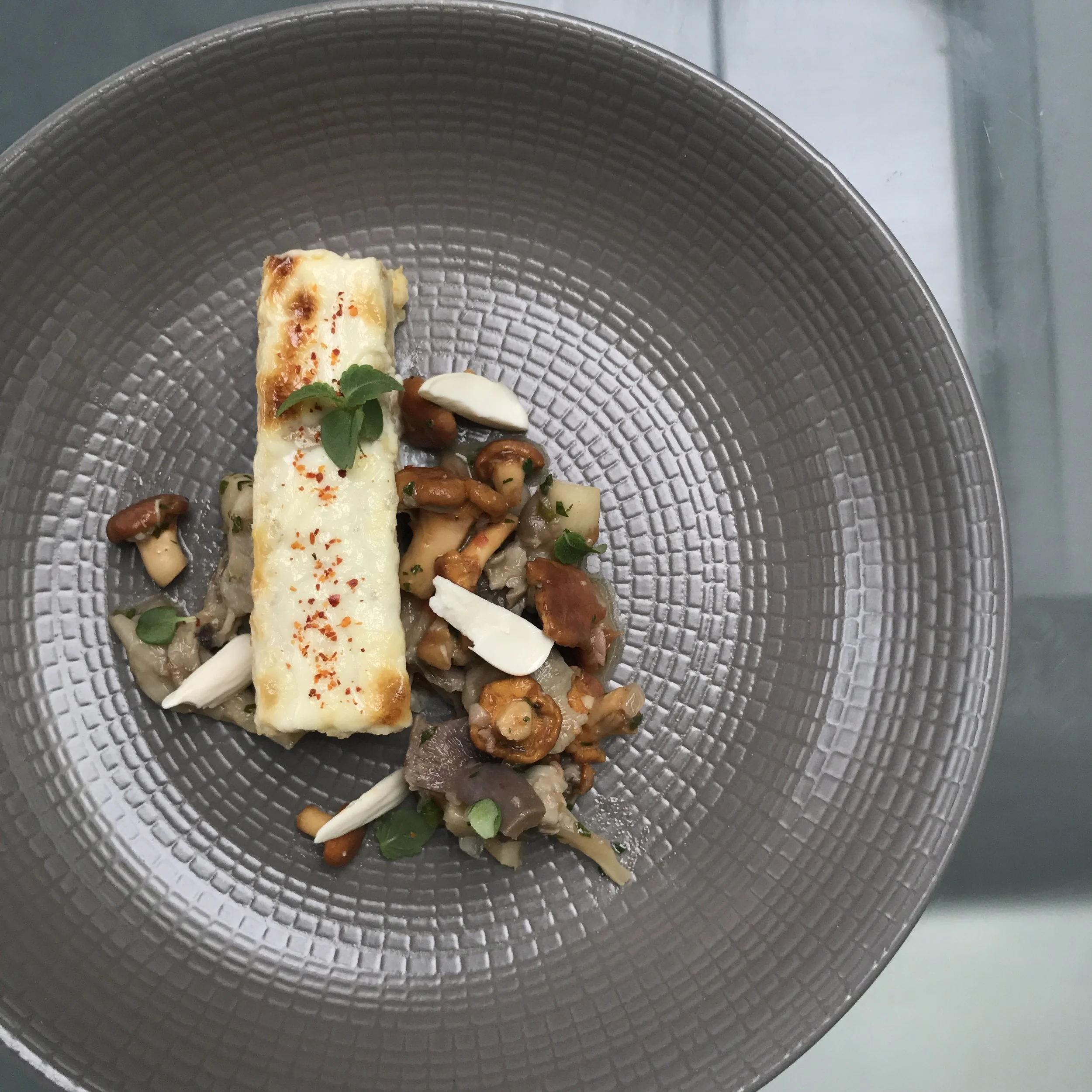 Rye bread spaetzle, buttercup squash and gruyere sauce, toasted pine nuts, sauted asparagus and spinach, seared carrots (1st Place in the day old bread competition) (Copy)